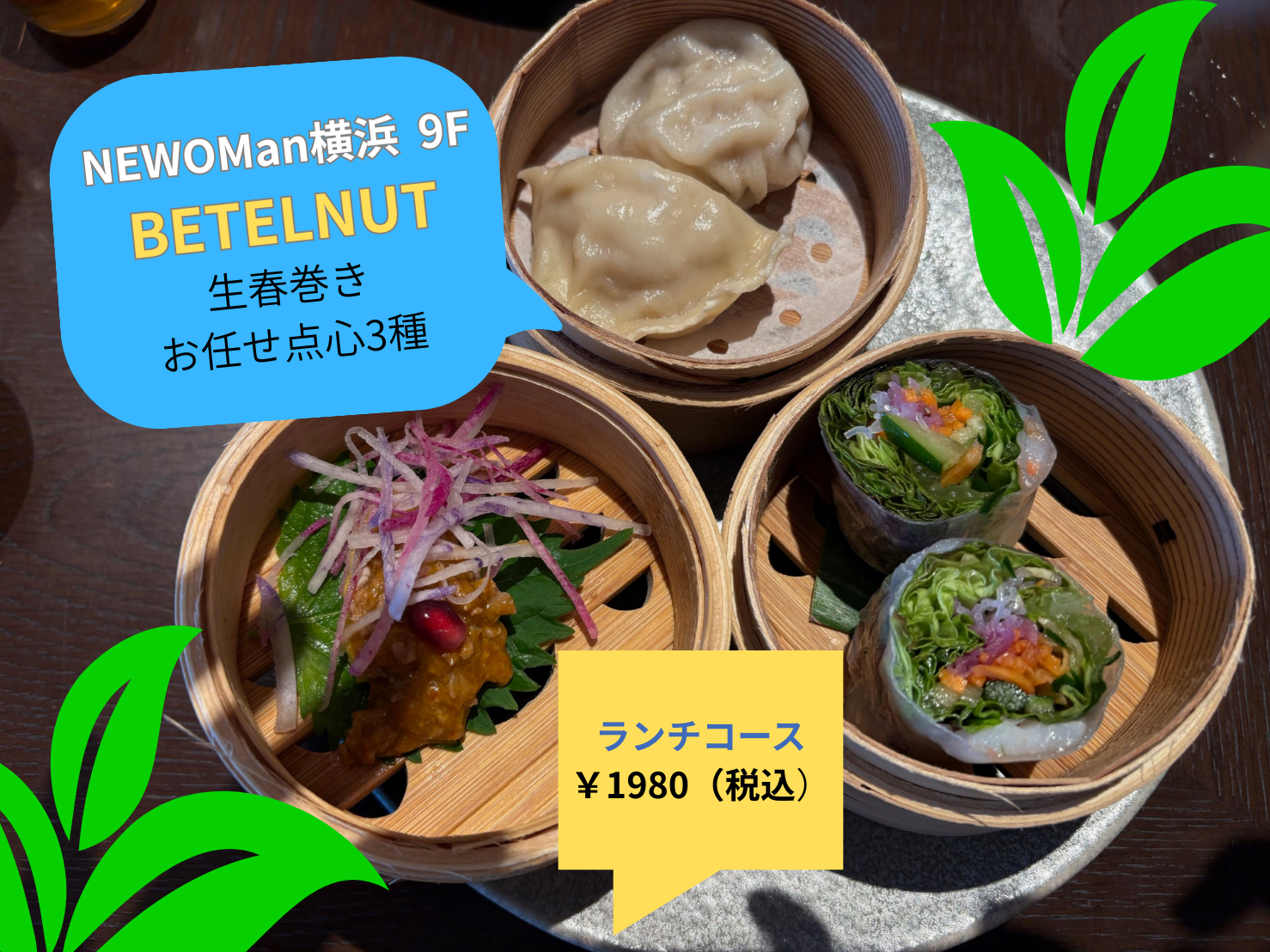 生春巻き・おまかせ点心3種など・・・前菜付きで、メイン料理はカオマンガイを選択しました。