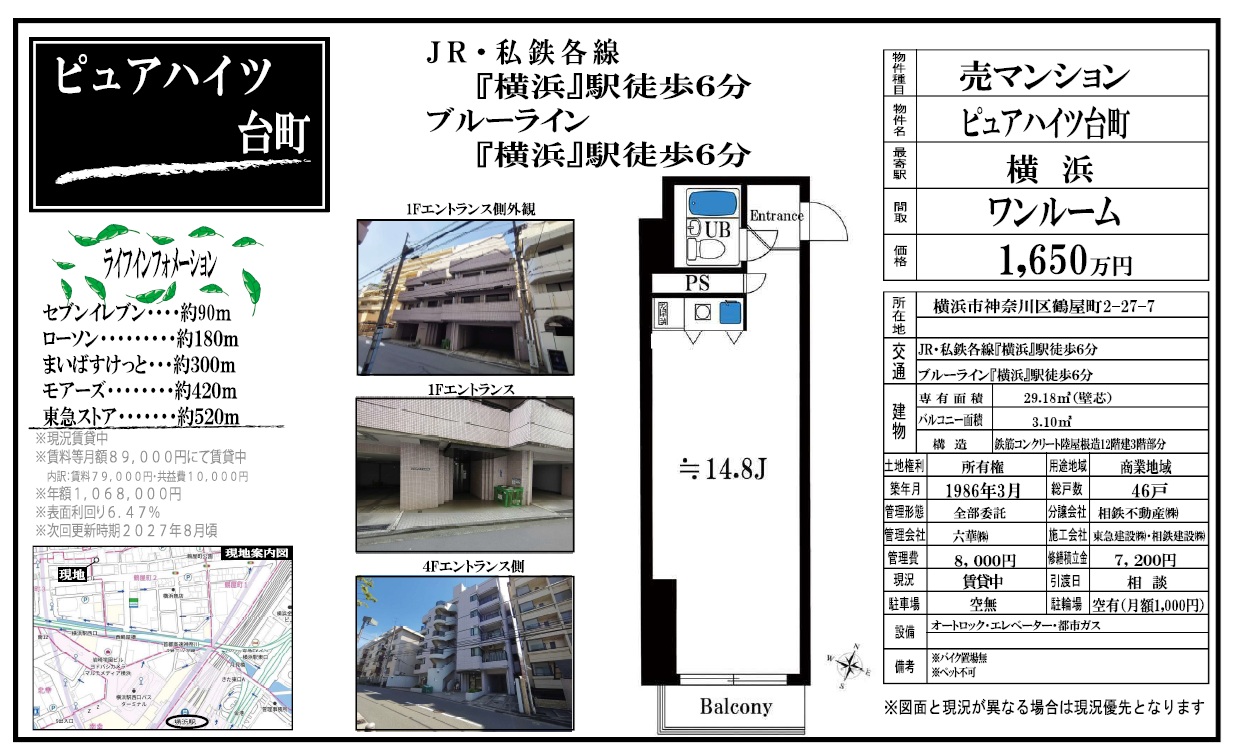 【投資用・オーナーチェンジ】横浜駅まで平坦徒歩6分!表面利回り6.47%【ピュアハイツ台町】のご紹介2026-04-24